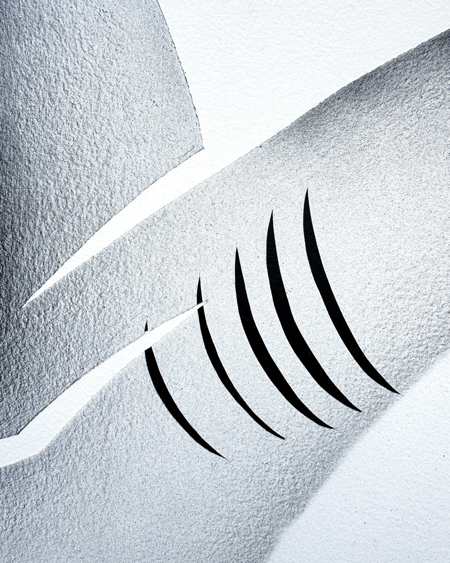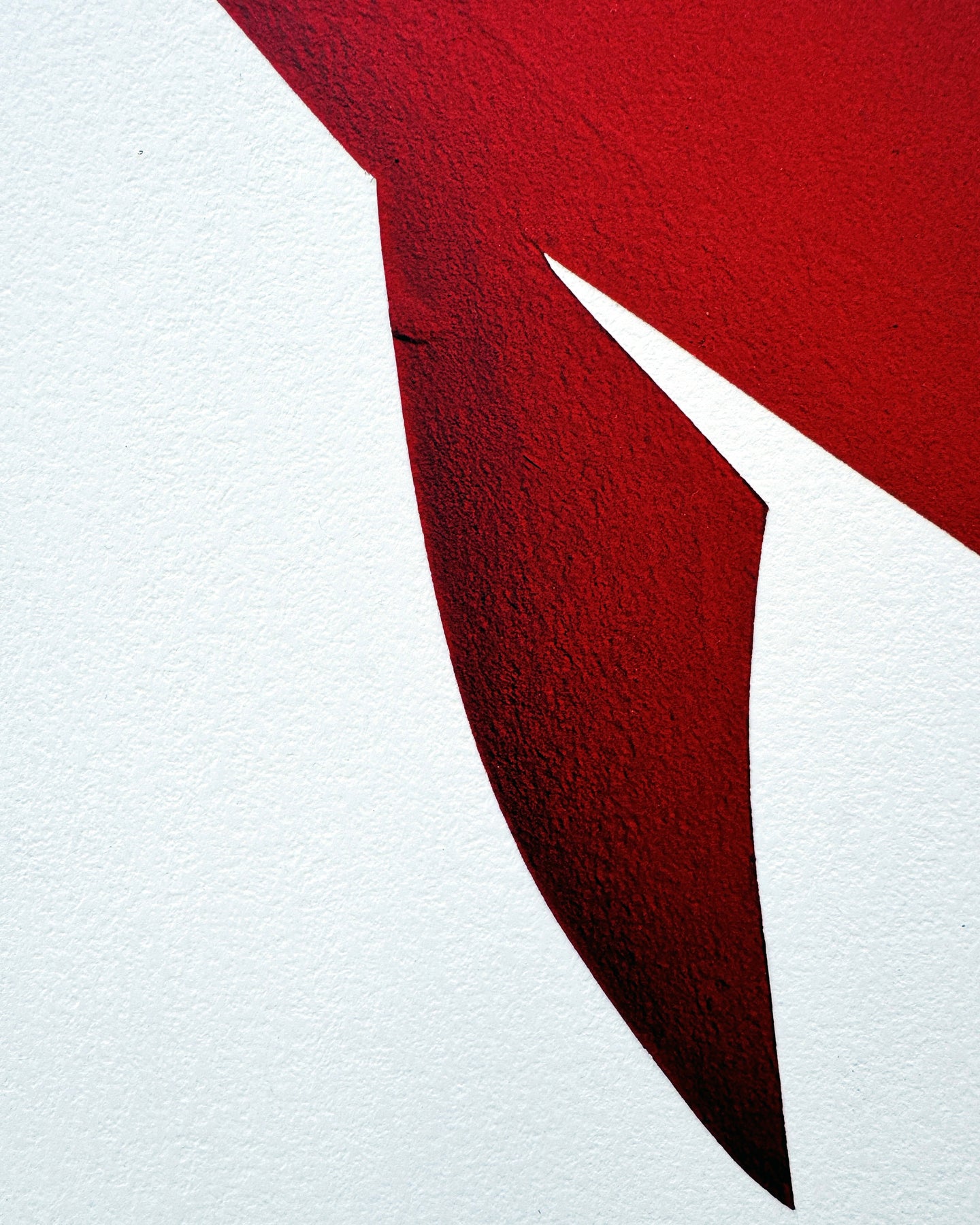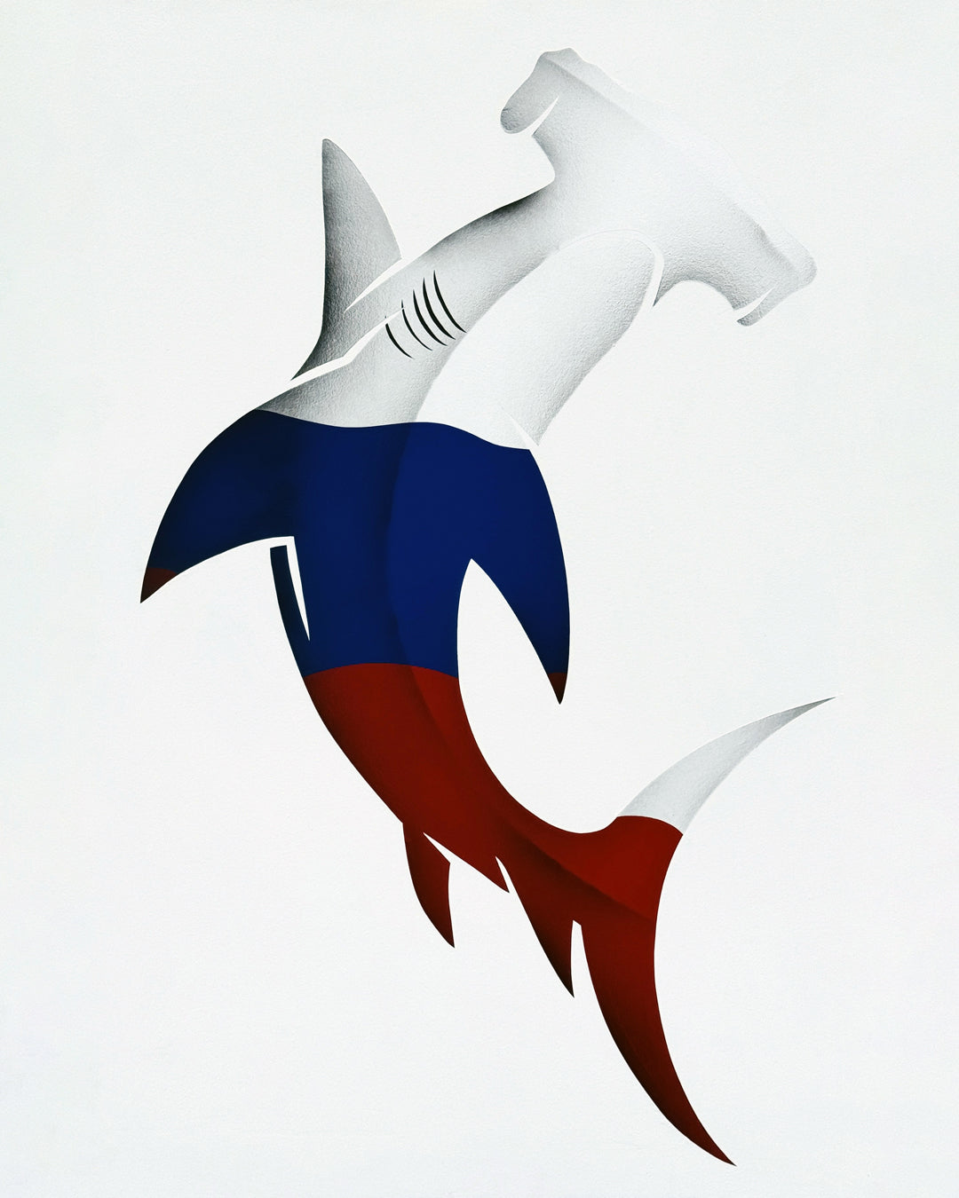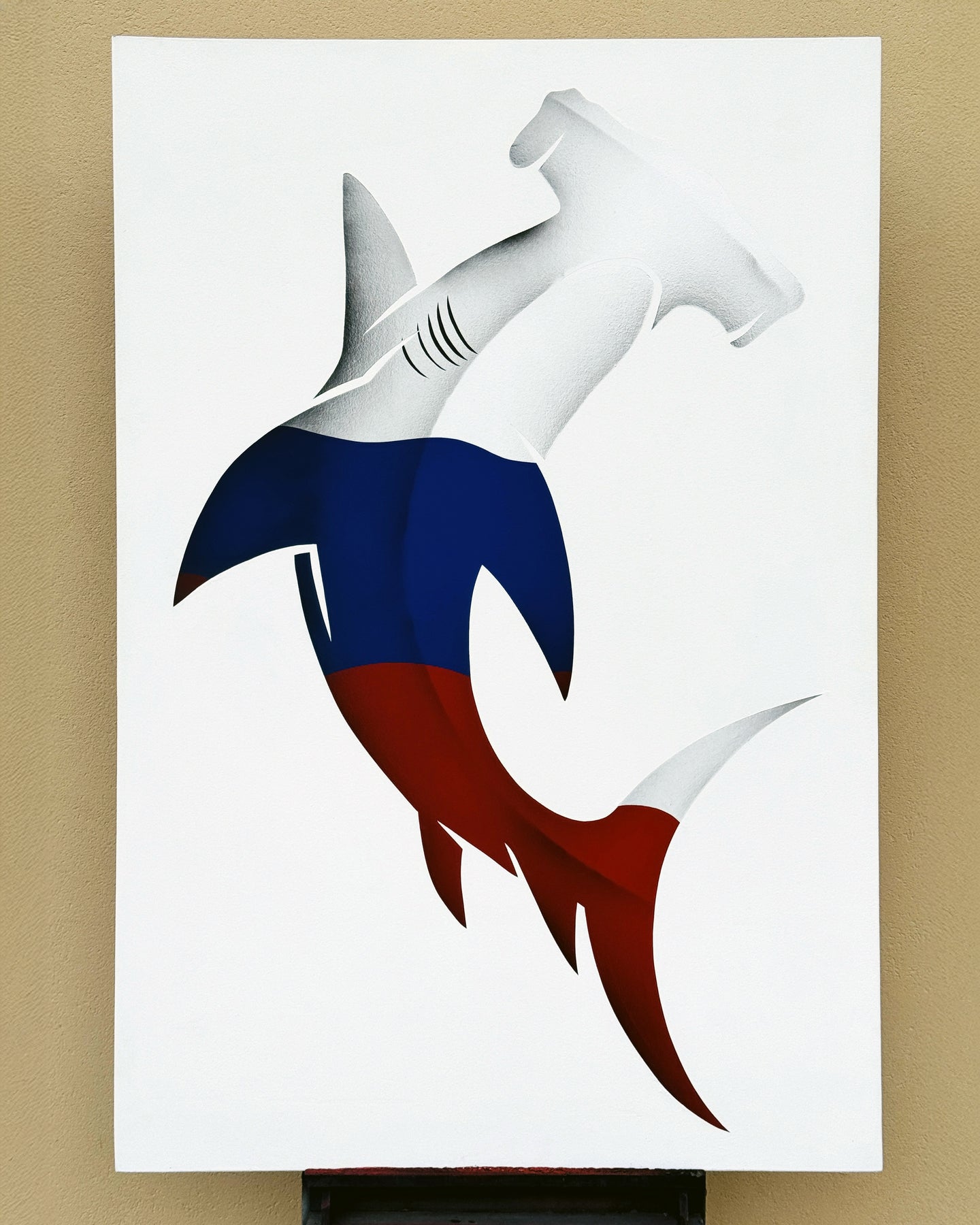 The predator as an archetype of power. The Russian Shark by Marco Morosini is not a representation, but a geopolitical simulacrum: a figure that dominates space through the tension between the rigor of acrylic and the force of spray paint.