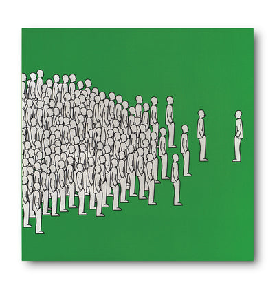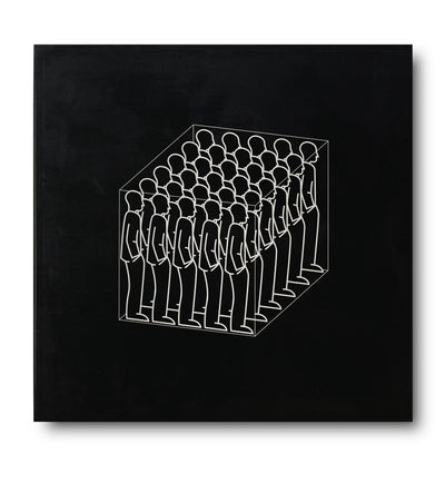 The “uominiuomini” series by Marco Morosini, inaugurated in 1998, is conceived as a fascinating exploration of human alienation, embracing a contemporary graphic style. The works, the result of an industrial process, elegantly depict male figures born from an ancient Japanese pictogram, reworked into a contemporary representation: a featureless man, in a two-piece suit, apathetic and indifferent. Morosini, a graduate in graphic design from ISIA in Urbino, stands out in the skillful balance between his industry experience and the creation of a vibrant dialogue between contemporary art and a broader audience. The series not only provides a penetrating look into the complexity of modern life but also celebrates the inherent strength and resilience of the individual in the face of daily challenges. While maintaining a high visual sophistication, Morosini's work serves as a lit bridge between contemporary aesthetics and intellectual refinement. Each work, produced using industrial serial techniques, stops at the first copy, emphasizing uniqueness within mass production.