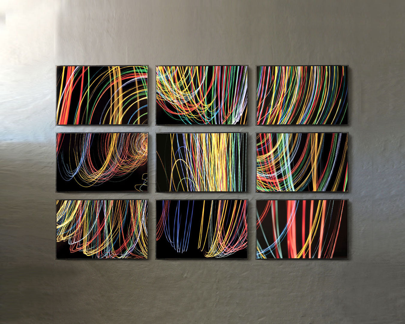 "Light Stripes" is reminiscent of a night full of rainbow lights. It is the collection of photographs created through the game of color, generated by the movement of neon light. The technique of the "long exposure" set in the camera gives a dynamic feel to the work. In addition, the effect is highlighted even more by the prints on glass, with a high resolution, maximum fidelity of colors and details. A picture that gives an emotion and animates the environment in which it is exposed.